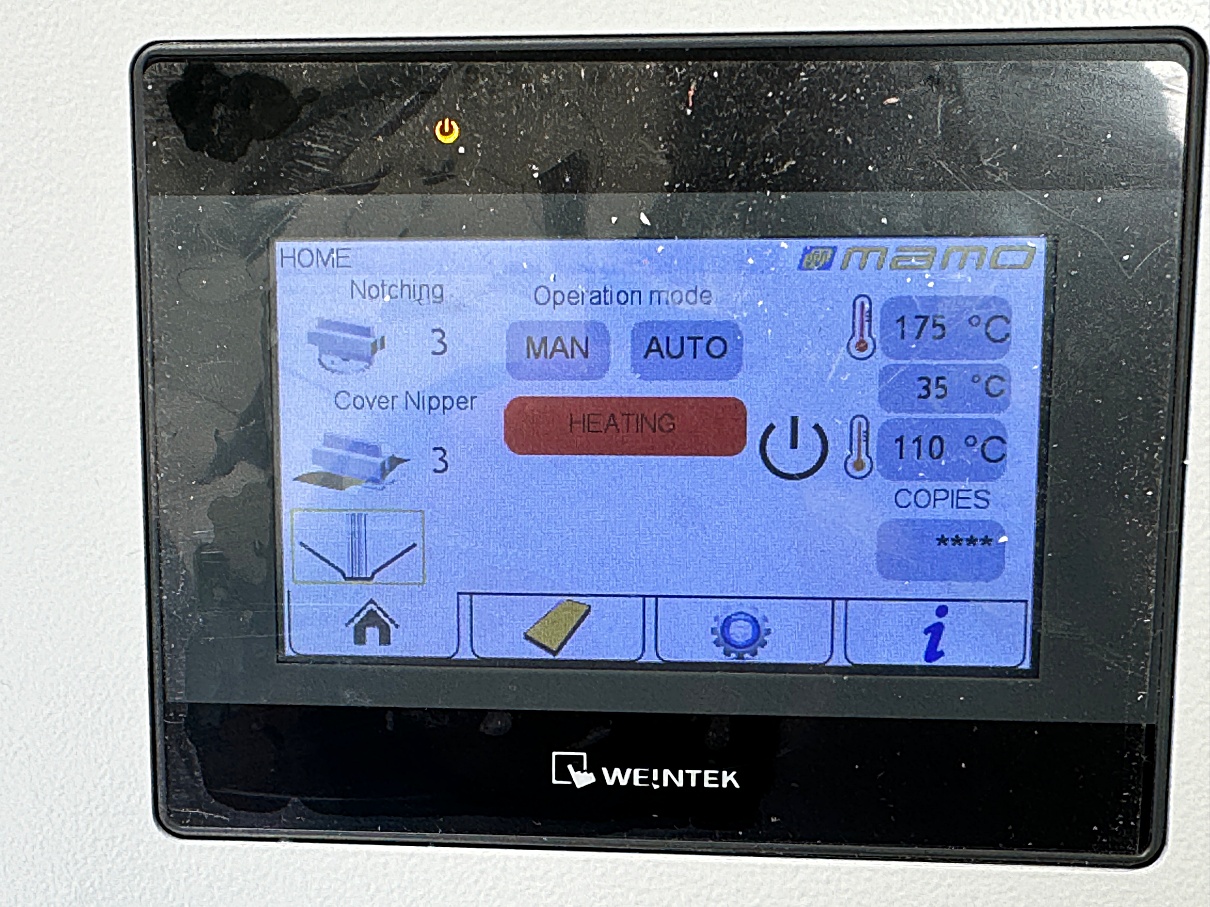 | Description | Semi-automatic and automatic hot melt perfect binder for high productivity operations. Can be used for soft and hard covers blue binding from a minimum thickness of 1 mm up to a maximum of 50 mm, including spine pressing of the cover for perfect square books or magazines. Electric book clamp closure with adjustable closing time and pressure. Notching and milling are dust free. Colour touch screen interactive operation panel for all functions, settings and programs. |