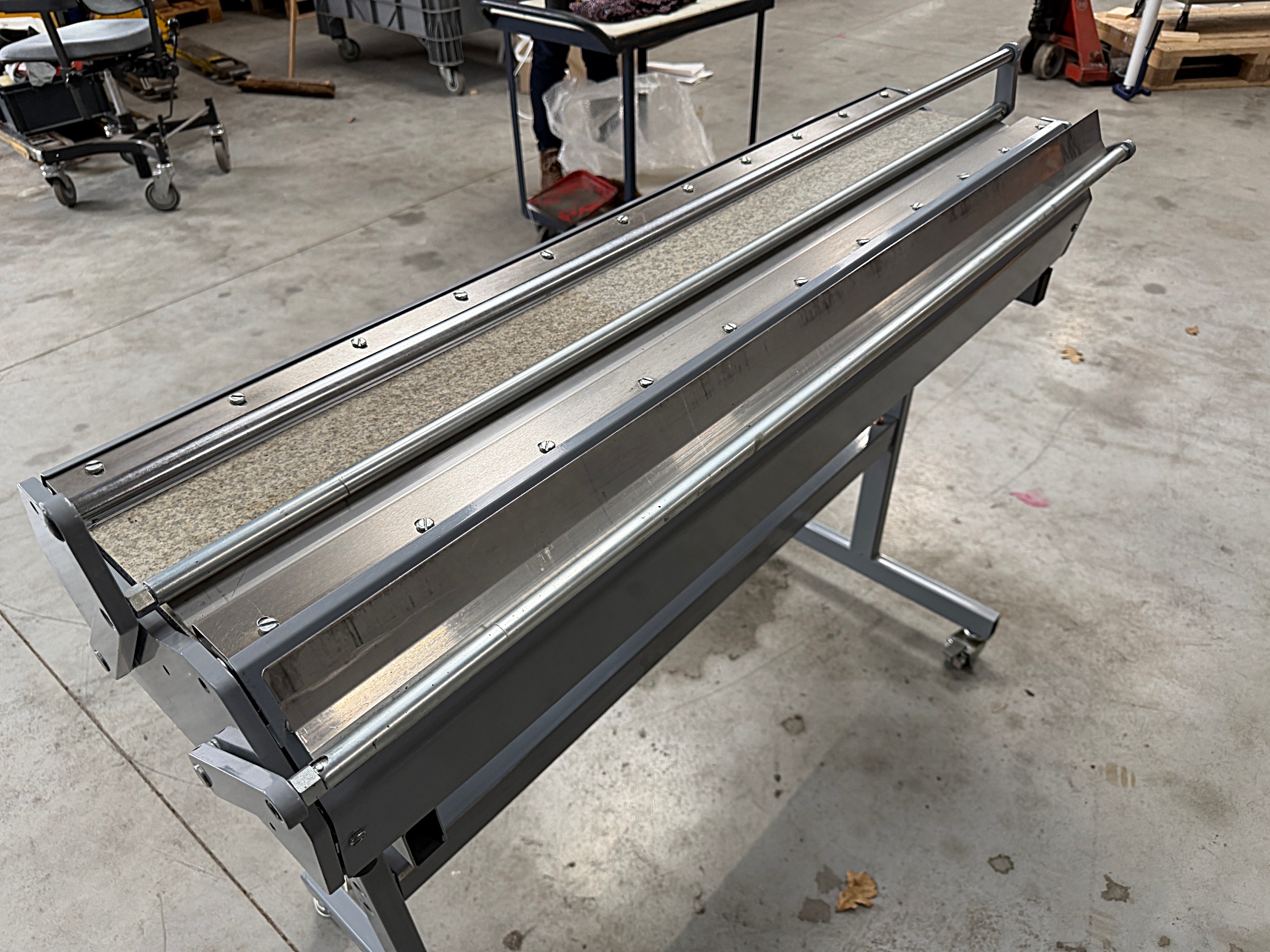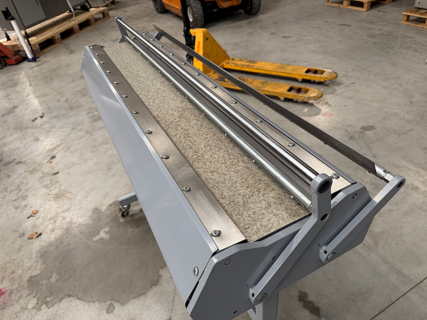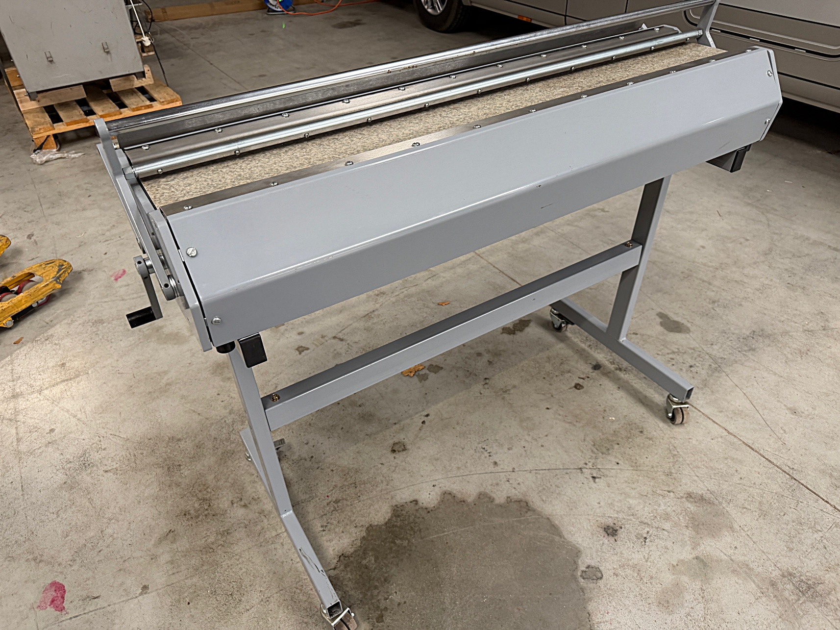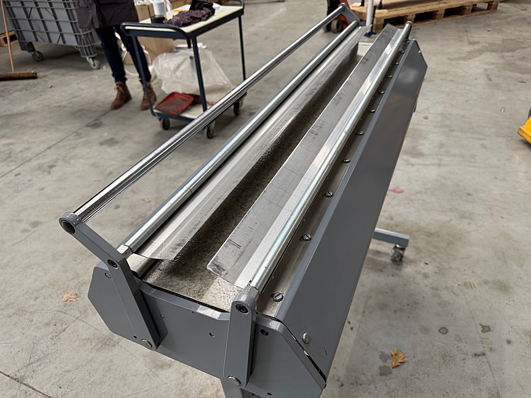 | Description | Floor model manual feed plan folder for folding large size technical drawings to a DIN A4 size end result. |