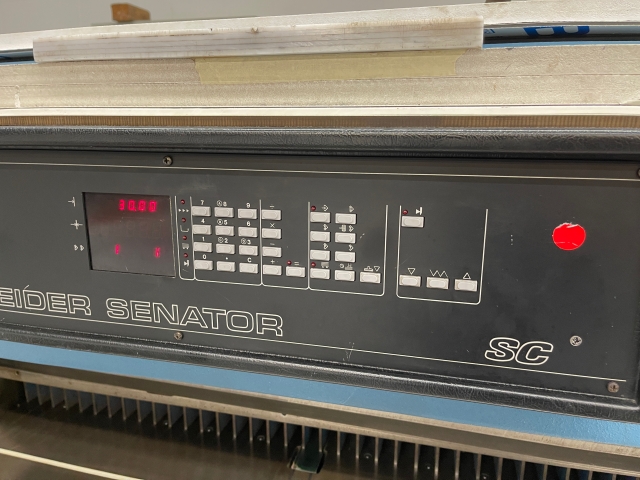 | Description | Hydraulic paper cutter with digital operating console with 99 programs (each with 999 steps and eject function)and digital read-out on the monitor, electric size, hydraulic pressing and cutting. chromed working table with airbed and extra-large side tables at the right and left side (also with airbed). All relevant safeties (IR bars, shields, 2 hand operation, sensors). 1 spare knife, manuals, and tools. |