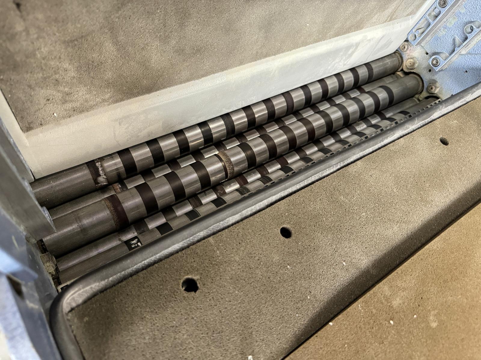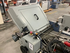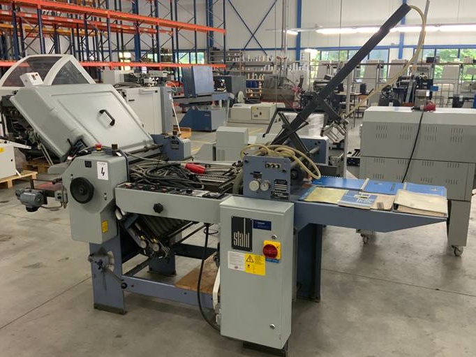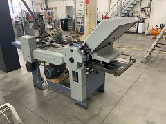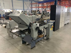 | Description | Air suction feed folder (vacuum), deep pile flat pile feeder with vacuum feeder wheel, 4 strokes, digital operation console on the machine with counter, noise hoods and retractable delivery conveyor belt. Creasing and perforating possible (not provided). All safeties and heavy-duty compressor/pump for vacuum and blowing. |