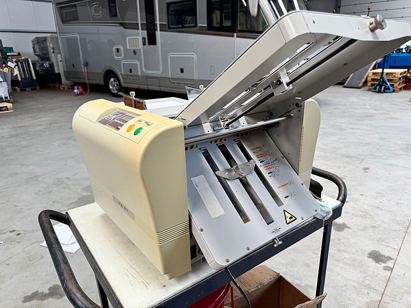 | Description | Table model friction feed folder with flat pile feeder with centering table, 2 strokes straight folding, easy set-up on operation panel with digital counter and a standard delivery. All safeties. |